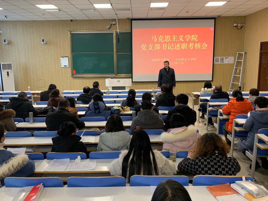 在社科楼515召开2019年度党支部书记述职考核评议会。学院全体师生党员参加会议,会议由党委副书记徐永新主持。