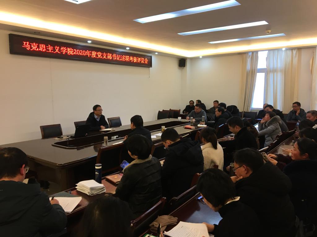 在社科楼323会议室召开2020年度党支部书记述职考核评议会。学院全体教师党员参加会议,会议由党委副书记何晓坚主持。