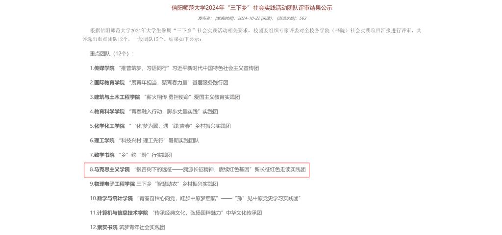 2024年“三下乡”社会实践活动团队评审结果公示。此次评选依据相关要求,由校团委组织专家对全校各学院(书院)社会实践项目汇报进行评审,小说狂人