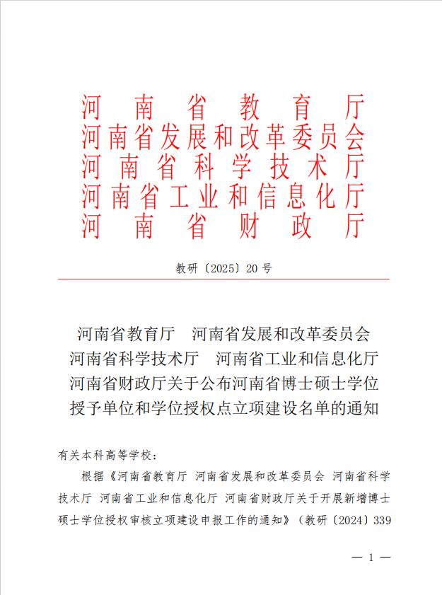 近日,河南省教育厅、河南省发展和改革委员会、河南省科学技术厅、河南省工业和信息化厅、河南省财政厅联合下发《关于公布河南省博士硕士学位授予单位和学位授权点立项建设名单的通知》(教研〔2025〕20 号),小说狂人