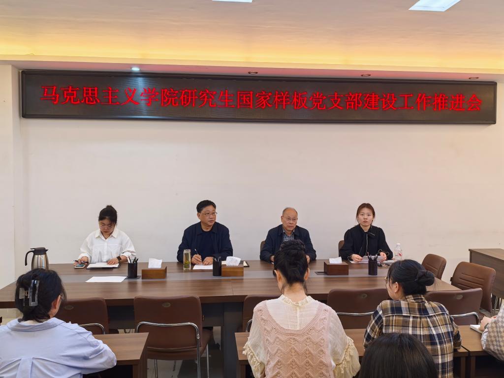 研究生国家样板党支部建设工作推进会”。副院长程晋富,研究生班主任厉有国,思政课教师张键、赵乐,研究生党支部全体党员和入党积极分子代表参会。会议由程晋富主持。