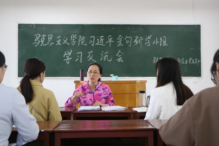 研究生党支部习近平金句研学小组学习交流会在教五楼201教室举行。全体支部党员参加了交流会。卢云晓主持会议。