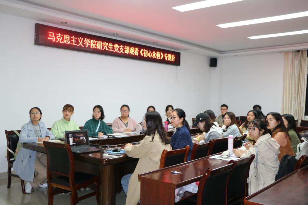 研究生党支部于10月10日晚在社科楼323会议室组织观看了《初心永恒》记录片,全体支部党员、入党积极分子都踊跃到会,认真观看。