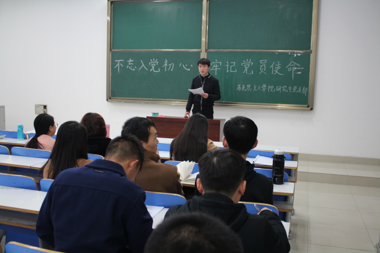 研究生党支部在社科楼325教室举行了主题为“不忘入党初心,牢记党员使命”的十九大报告学习活动。活动由支部副书记魏中龑主持,全体成员参加了活动。