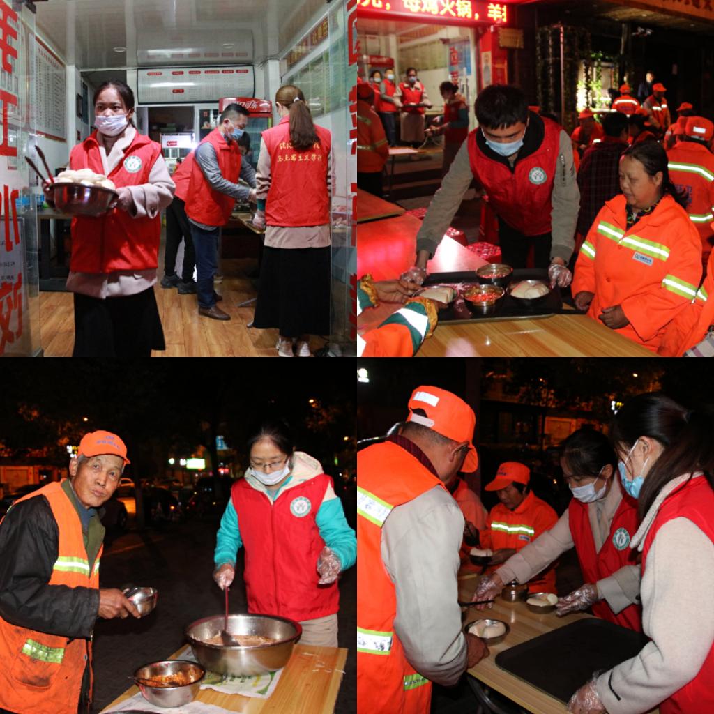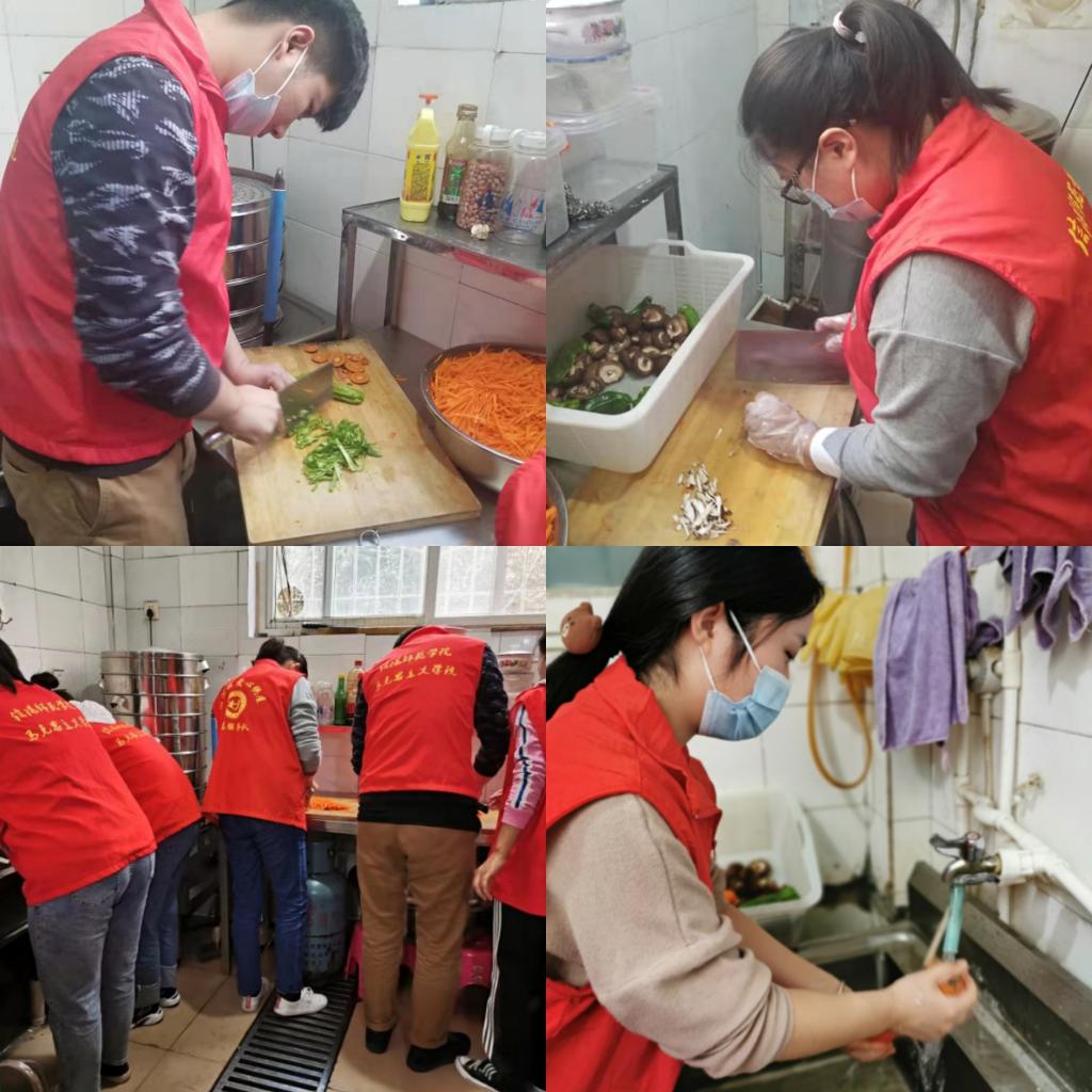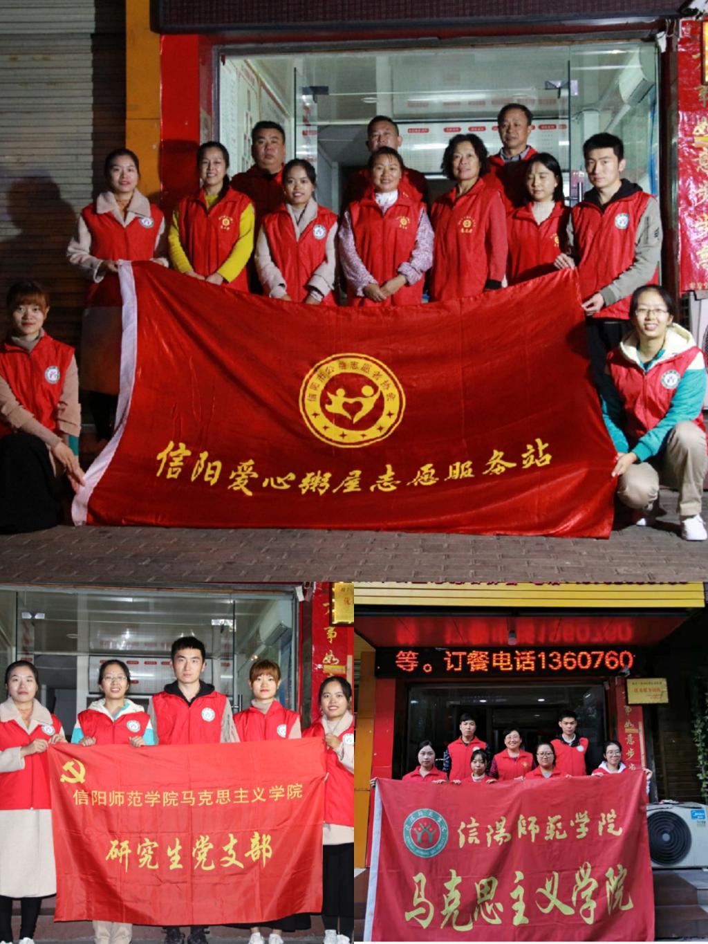 研究生党支部部分党员和入党积极分子组成志愿服务小队,来到信阳市申碑路浉河区“爱心粥屋”,为环卫工人备餐献爱心。