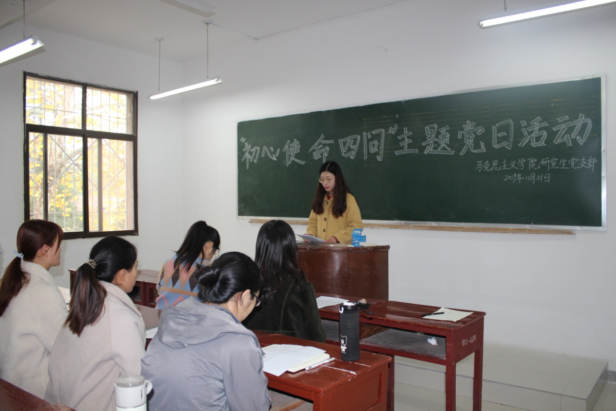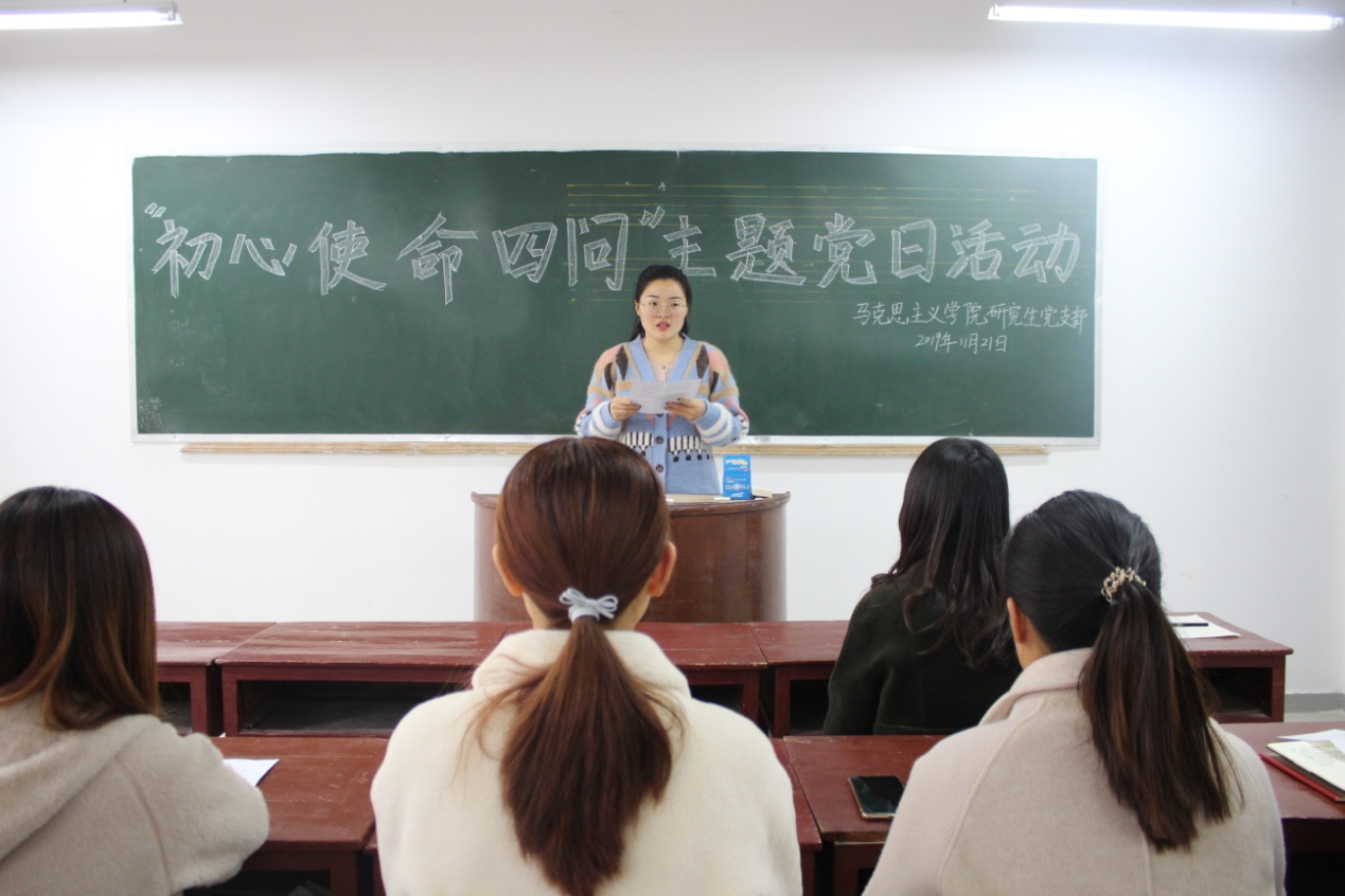 研究生党支部在教五楼201教室开展了“初心使命四问”主题党日活动,支部党员认真参加。活动由支部副书记李频捷主持。