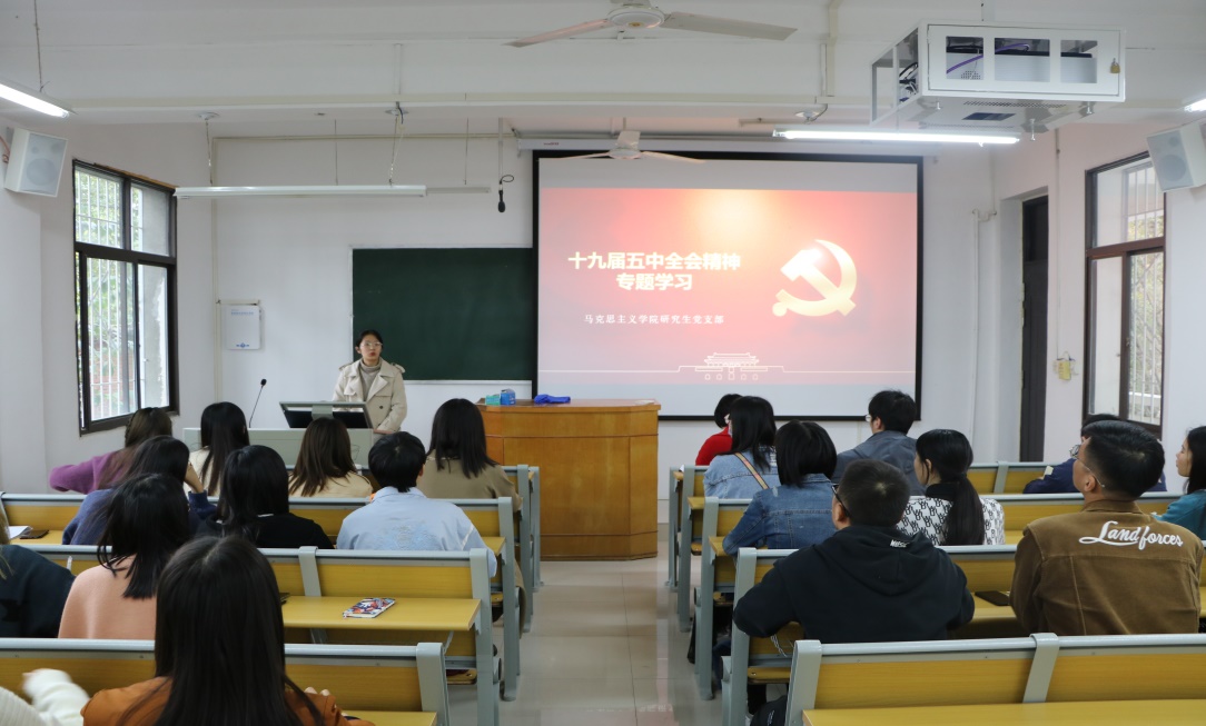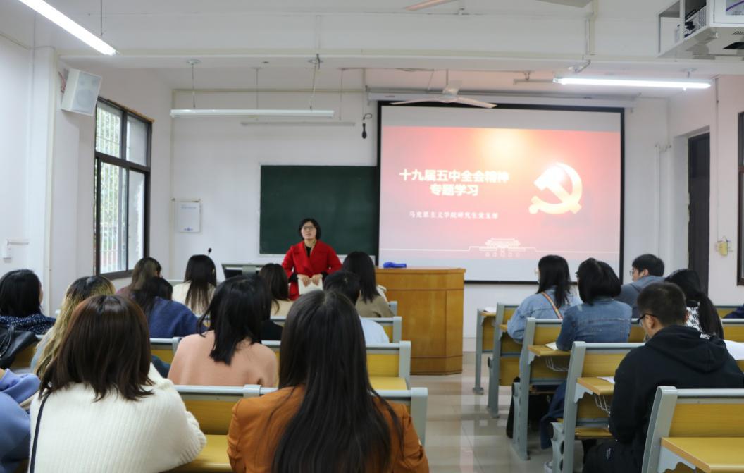 研究生党支部于教五楼203教室举行了十九届五中全会精神专题学习活动,支部党员积极参加。