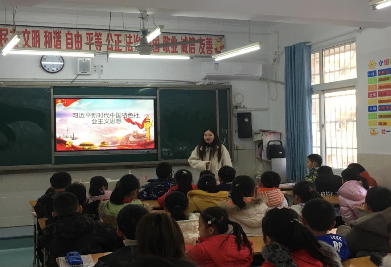 研究生党支部副书记刘润博,支部党员龚忍慧于信阳市第三小学开展“习近平新时代中国特色社会主义思想”专题思品课进课堂。
