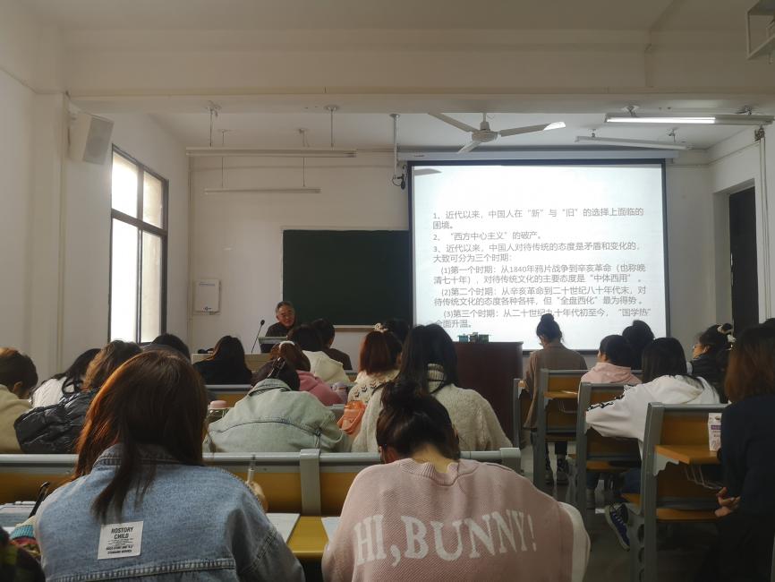 研究生学子作了题为“传统文化与修身之道”的专题讲座,学院全体研究生到场参加学习。