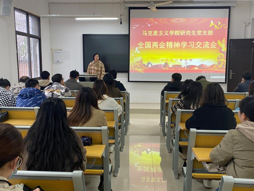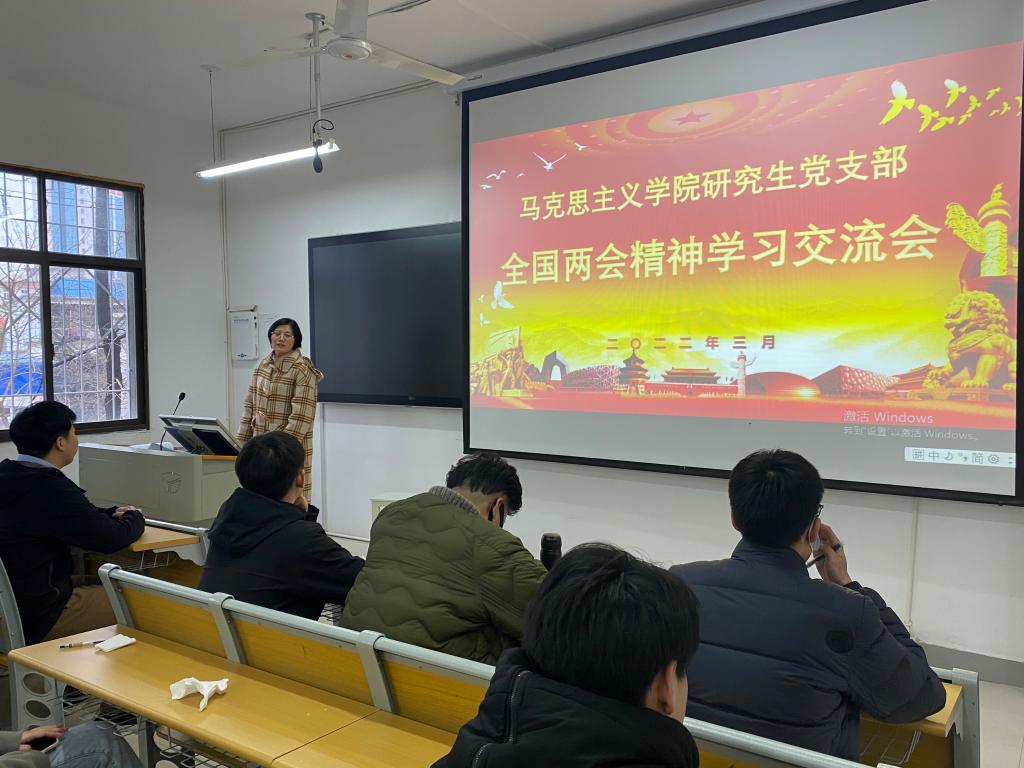 研究生党支部组织支部党员于教学楼五楼203教室开展全国两会精神学习交流会。会议由支部书记郑晨霞主持。