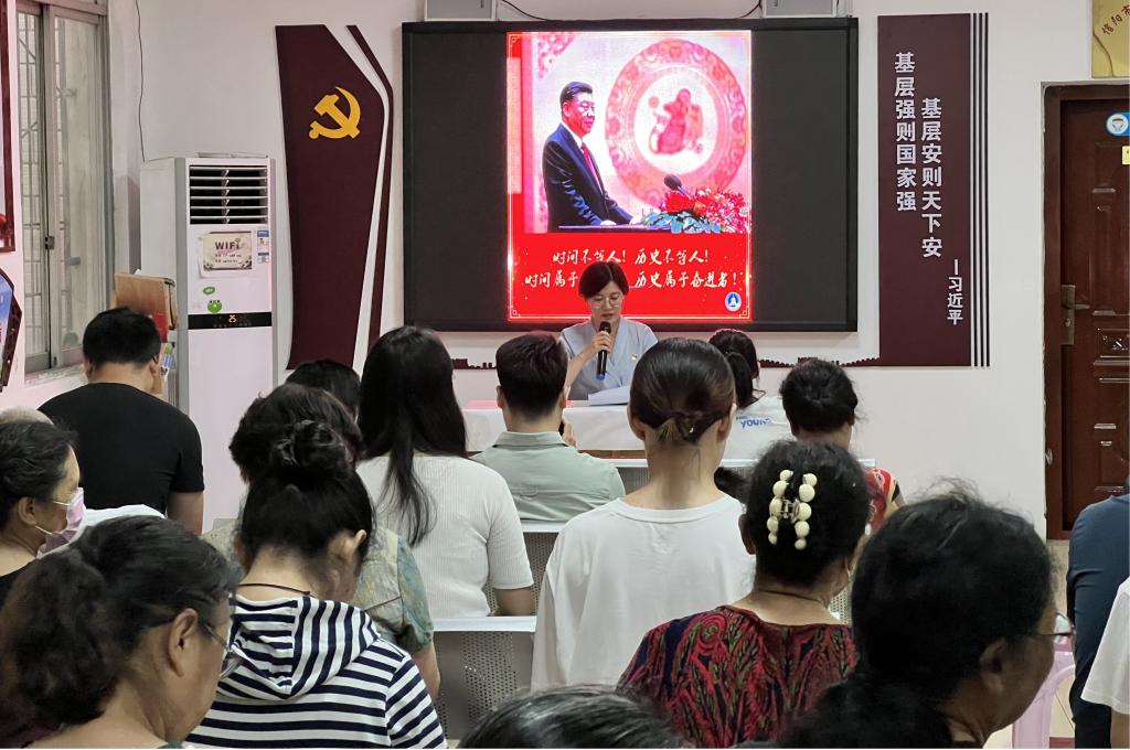 研究生党支部书记郑晨霞和支部党员鲁桐君、汤欢一同赴华森社区开展了习近平金句宣讲活动。