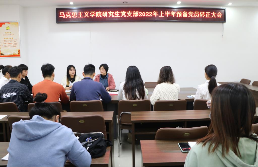 研究生党支部于社科楼323会议室召开2022年上半年预备党员转正大会,会上讨论了预备党员文浩、曲直、周忠鑫、龚忍慧、彭燕、詹彦彦6名同志的转正问题。本次会议由支部书记郑晨霞主持,监票人由赵影担任,计票人由王澳远担任。