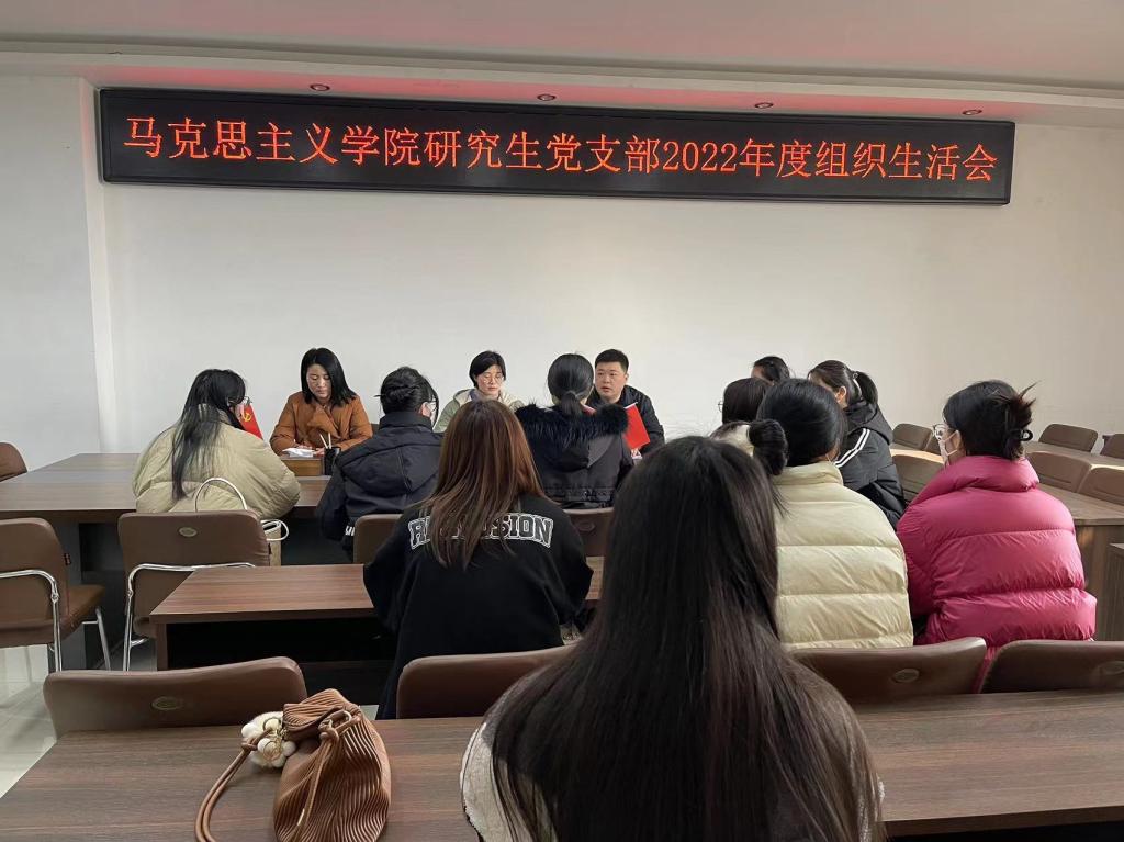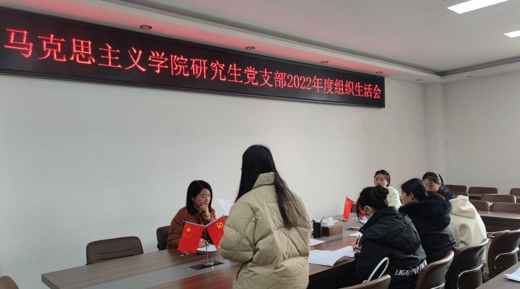 研究生党支部在社科楼323会议室召开2022年度专题组织生活会和民主评议会,会议由支部书记郑晨霞主持。