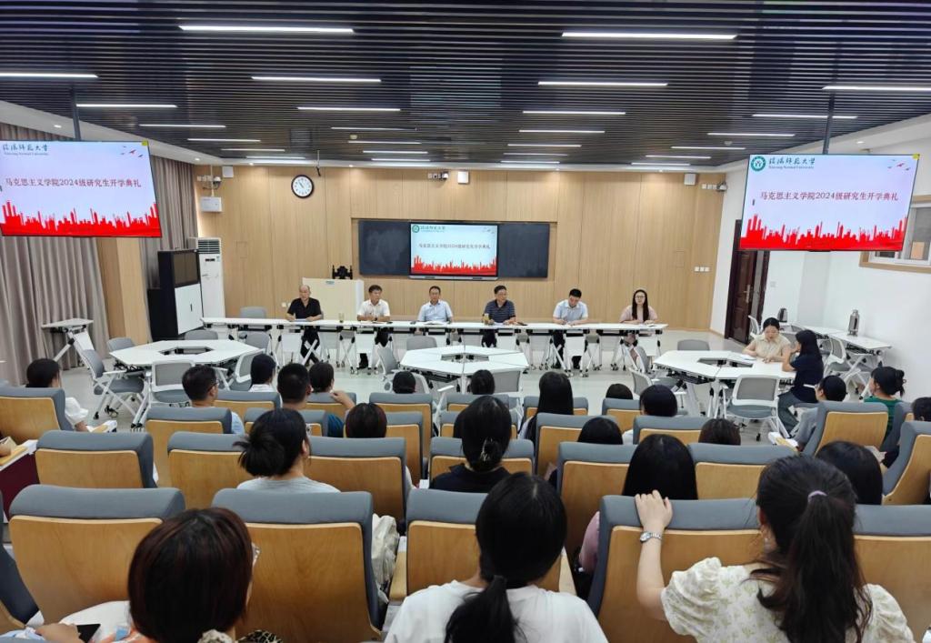 2024级研究生新生入学教育暨师生见面会在社科楼516教室召开。院长唐国战,副院长程晋富、常文涛,党委副书记王超,研究生班主任厉有国,研究生教学秘书张键等出席会议,2024级全体研究生及老生代表参加会议。会议由副院长程晋富主持。