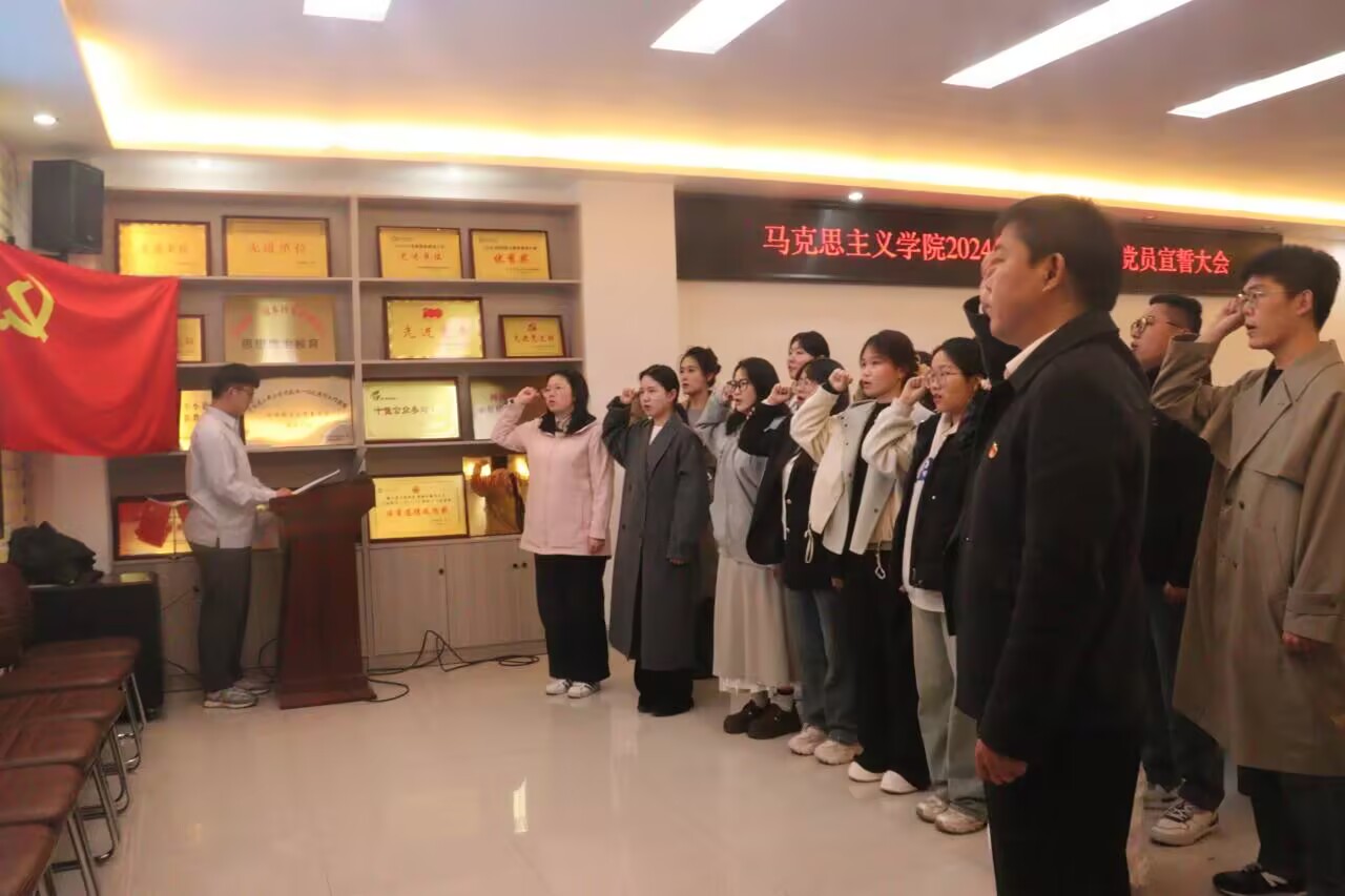 于社科楼323教室召开2024年下半年预备党员宣誓大会。小说狂人