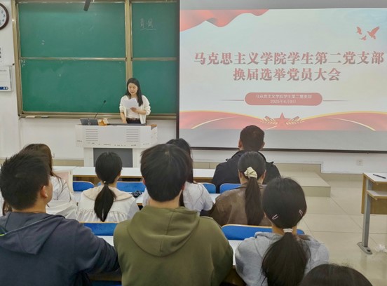 学生第二党支部在社科楼514教室召开换届选举大会。支部全体正式党员和预备党员共同参会。会议由任婷同志主持。