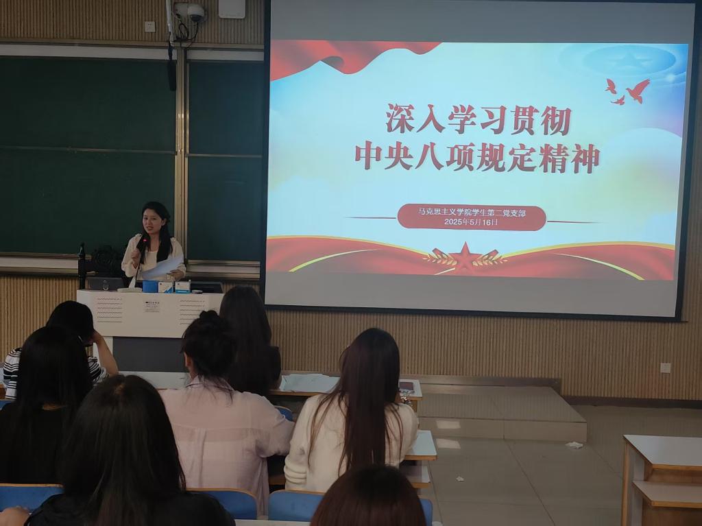 学生第二党支部召开了深入学习贯彻中央八项规定精神的专题会议。会议由学生党支部书记任婷主持,全体学生党员参会。