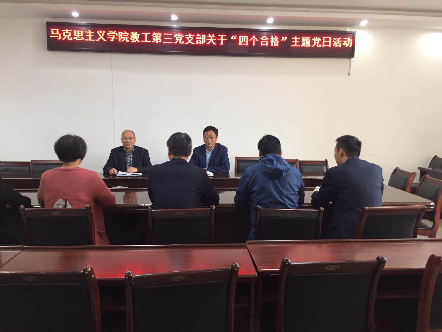 教工第三党支部在学院323会议室顺利召开“四个合格”主题党日活动。会议由支部书记厉有国同志主持。