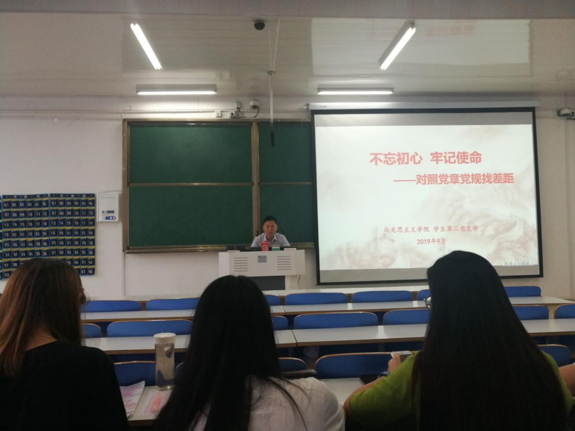 学生第二党支部在社科楼516开展“不忘初心,牢记使命—对照党章党规找差距”主题党日活动。学生第二党支部书记曹栋、支部党员参加此次活动。会议由支部书记动曹栋主持。