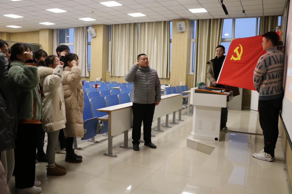 2020年下半年预备党员宣誓大会在社科楼515教室举行。学院党委副书记何晓坚、学生党支部书记和本批接收预备党员共同参与此次大会。会议由分团委副书记姜雨杭主持。
