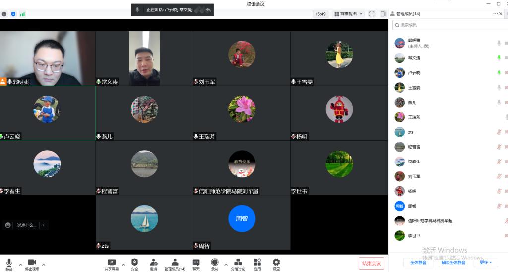 教工第四党支部线上召开“深入学习习近平总书记视察安阳重要讲话精神、大力弘扬红旗渠精神”主题组织生活会(腾讯会议号:551-160-617),会议由支部书记常文涛主持。