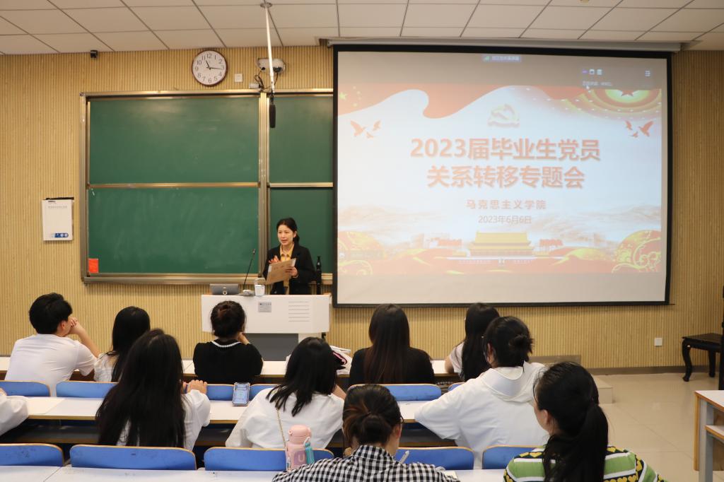 在社科楼515教室召开2023届毕业生党员关系转移专题会。学院专职组织员任婷、分团委副书记安聪以及2023届本科、研究生毕业生党员共同参加会议。会议由安聪主持,采用线上线下相结合的方式。