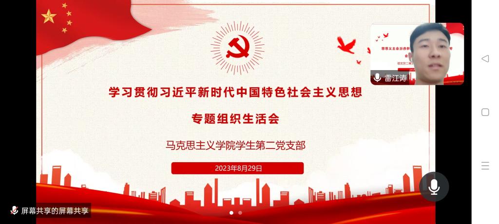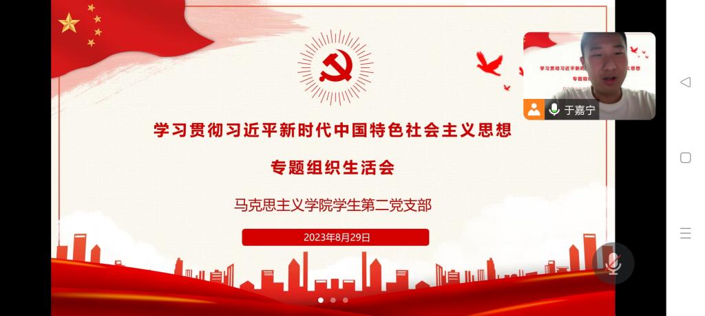 学生第二党支部结合实际情况,通过腾讯会议召开学习贯彻习近平新时代中国特色社会主义思想专题组织生活会。学生第二党支部全体党员、预备党员参加会议,学生第一党支部书记高小佳同志参会并指导会议。会议由组织委员于嘉宁同志主持。