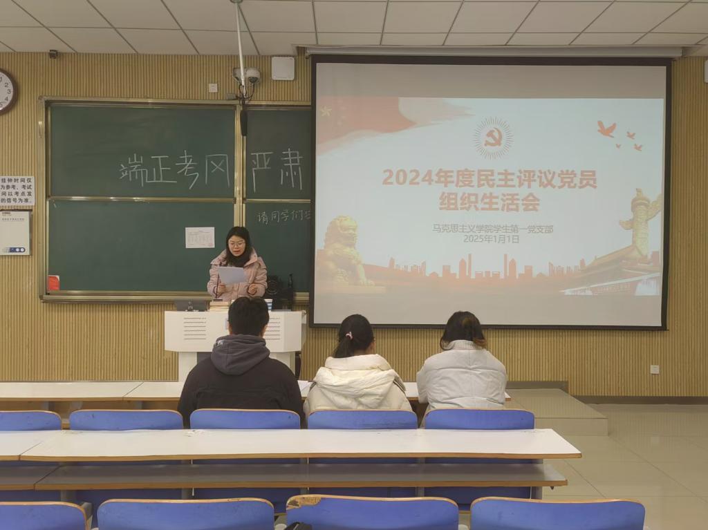 会议伊始,学生第一党支部书记高小佳同志对过去一年的支部工作进行总结汇报。她指出,2024年里,本支部各项工作有序稳定开展,各位同志在理论学习、党性锤炼和实践转化方面都下足了功夫、提高了修养、增强了能力,成效显著。同时,高小佳也对支部中存在的问题作出强调,勉励支部党员同志要树立优良作风,汲取经验教训,改正自身不足,以实际行动为支部建设做出应有的贡献。接着,支部全体党员按照会议议程和相关要求展开了民主评议,切实进行了批评与自我批评。整个民主评议过程公开公正,规范有序,经支部全体党员同意和支部书记确认,最终王岚霄同志、易从漫同志被确定为2024年度民主评议“优秀”等次。