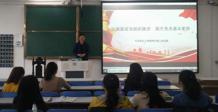学生第二党支部在社科楼516教室开展“加强基层组织建设,提升党员基本素养”主题党课。党课由支部书记曹栋讲授。学生第二党支部全体党员和预备党员共同参与此次党课。