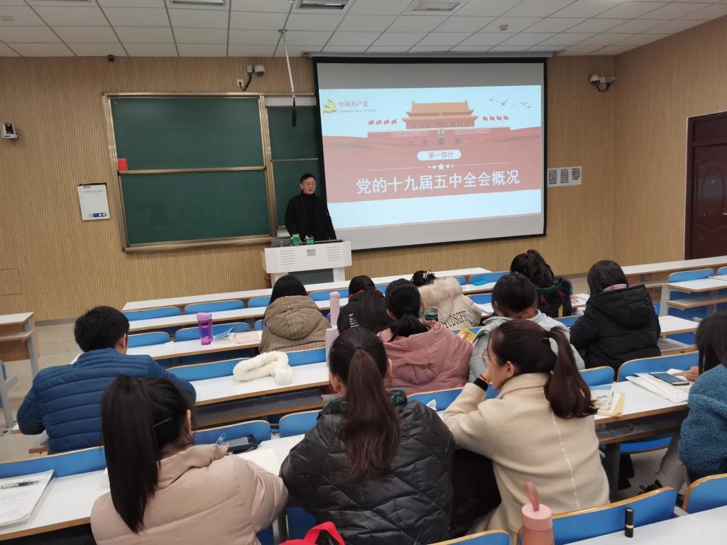 学生第二党支部在社科楼515教室顺利开展了学习“十九届五中全会精神”主题党课,学生第二党支部书记曹栋以及第二党支部全体成员参与了本次学习活动。党课由曹栋讲述。
