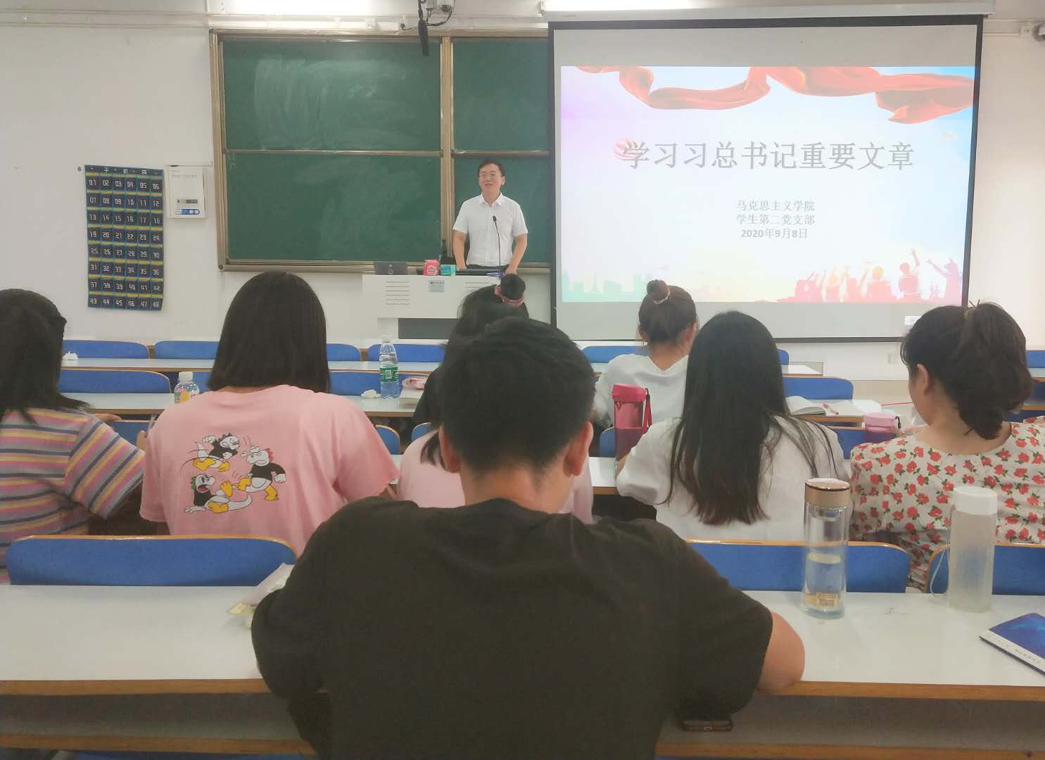 学生第二党支部在社科楼514教室顺利开展“学习习总书记重要文章”主题党日活动。学生第二党支部书记曹栋、全体支部党员共同参加此次活动。会议由支部书记曹栋主持。