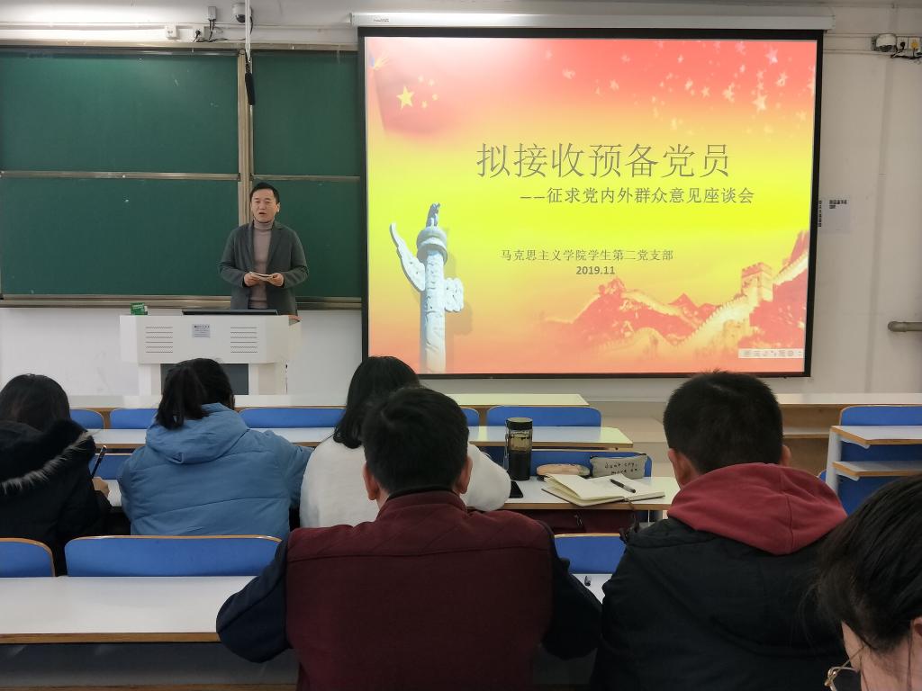 学生第二党支部在社科楼516教室召开征求党内外群众意见座谈会。学生第二党支部预备党员、发展对象和部分群众参加了此次会议。本次会议由支部书记曹栋主持。