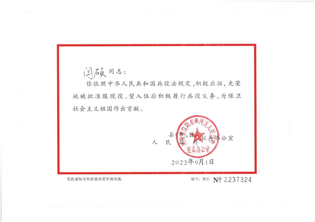 2018级思想政治教育二班应届毕业生白杰和2020级思想政治教育二班闫硕积极响应国家号召,应征入伍,立志为国防事业贡献自己的青春力量。