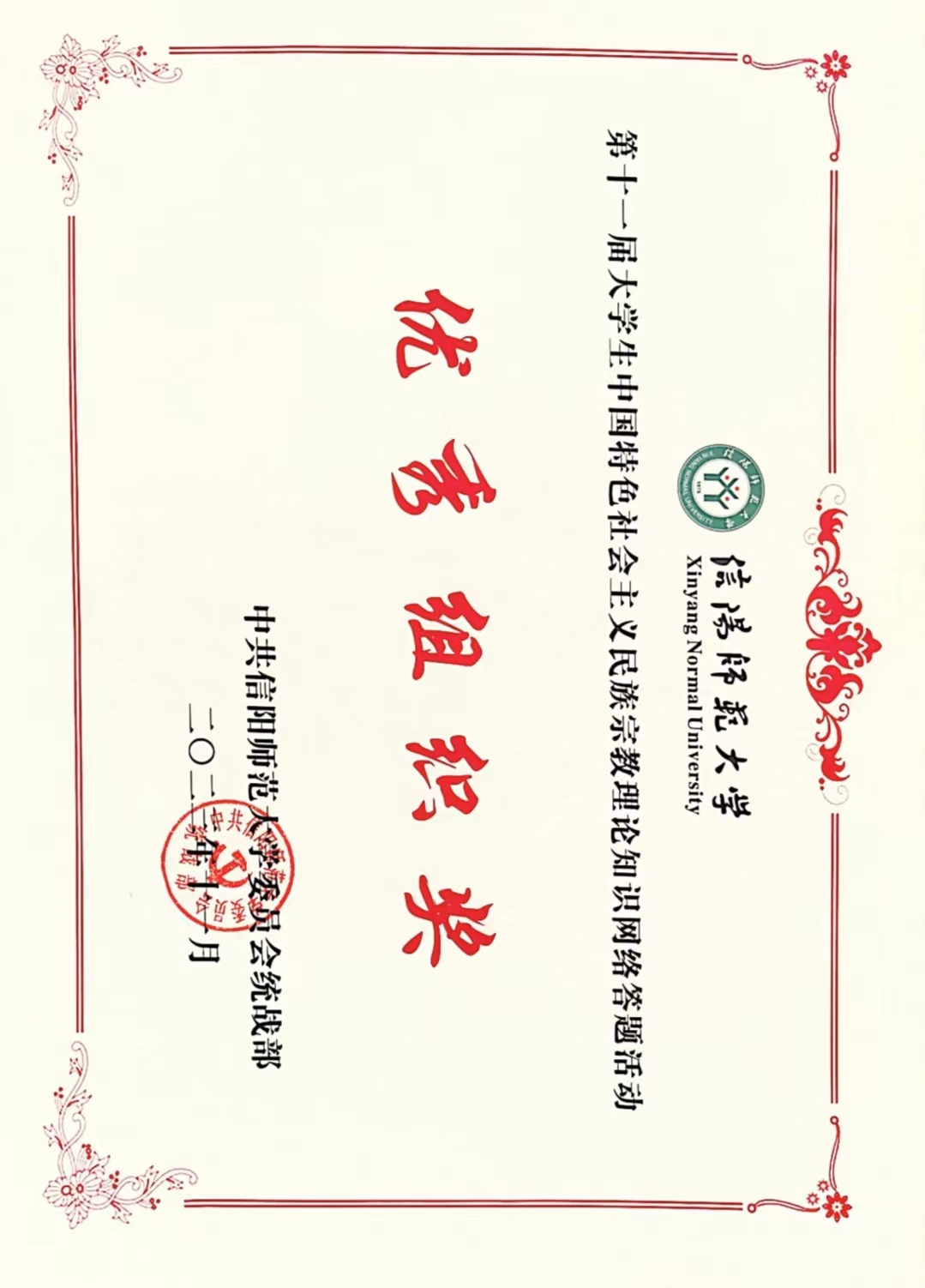 小说狂人 荣获第十一届大学生中国特色社会主义民族宗教理论知识网络答题活动“优秀组织奖”
