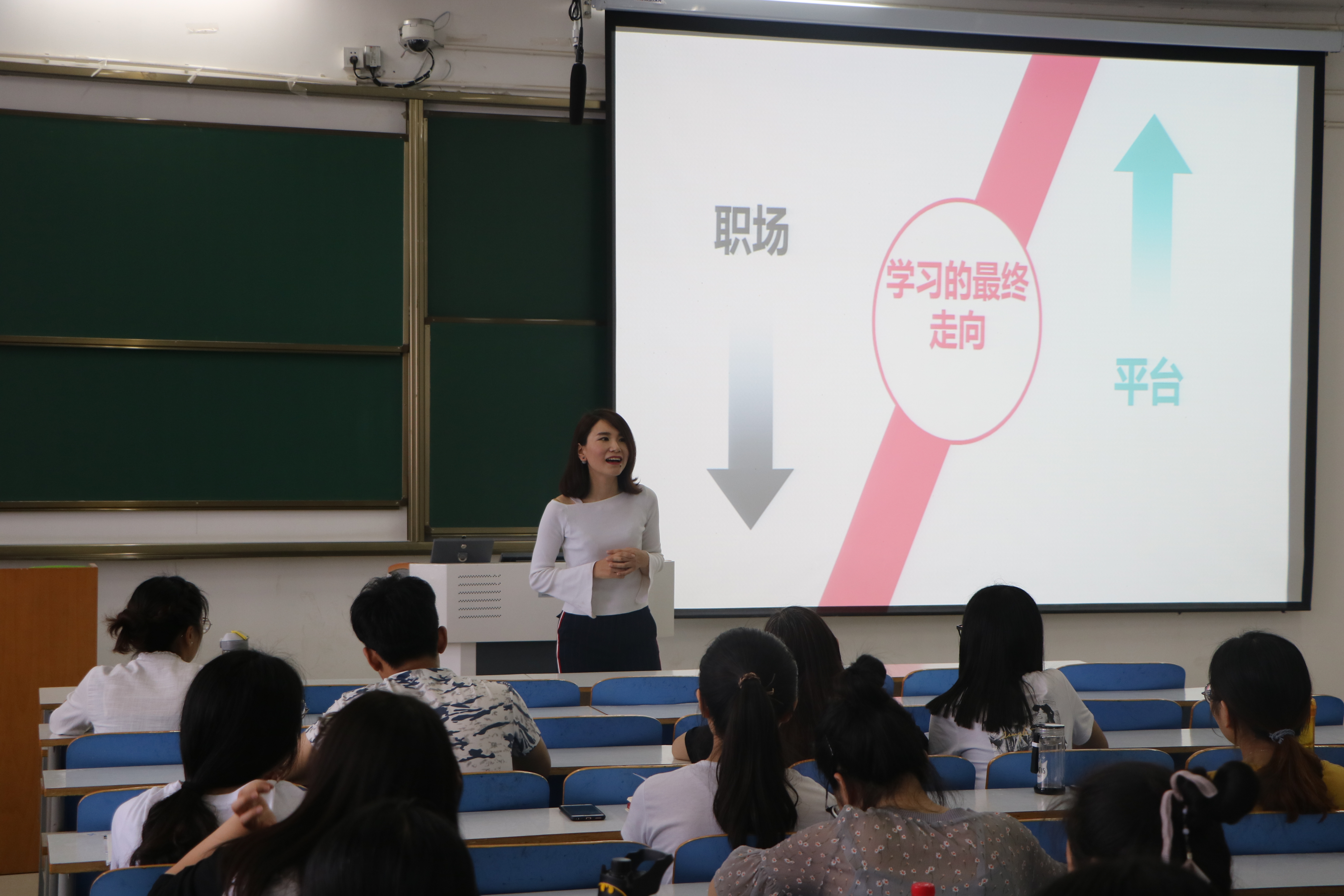 招聘会上,杜蕊首先对七田阳光全脑教育机构的基本情况进行宣讲。她结合ppt对该机构的用人要求、薪资待遇、未来发展等方面进行详细介绍。随后,她结合近年来各专业学生的就业去向对毕业生的就业形势进行了分析,强调了职业选择与自我发展的重要性,并对公办学校与私人机构的准入条件、薪资待遇等做出对比,指出从事于教育机构是当前前景较好的就业选择。在招聘人才的同时,她结合自身经历分享职场经验,与学生们进行面对面的交流互动,现场气氛热烈。不少应届毕业生现场投递个人简历,主动表达个人求职意向,并积极参与面试,顺利与该机构签订就业合同。