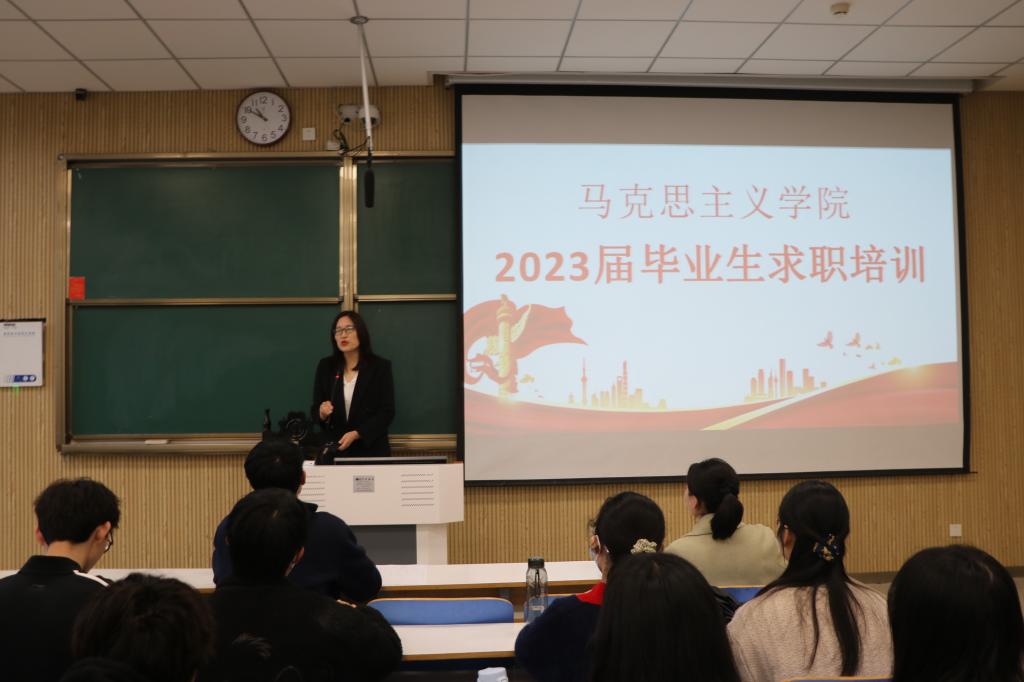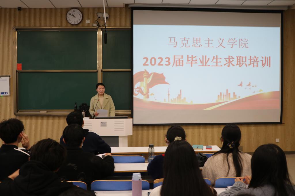 先后在社科楼515教室开展三场2023届毕业生求职培训活动。信阳师范学院招生就业处培训教师杨园园,毕业班班主任曹栋、陶青青,学生会主席团成员张芝一和2023届毕业生共同参加本次活动。