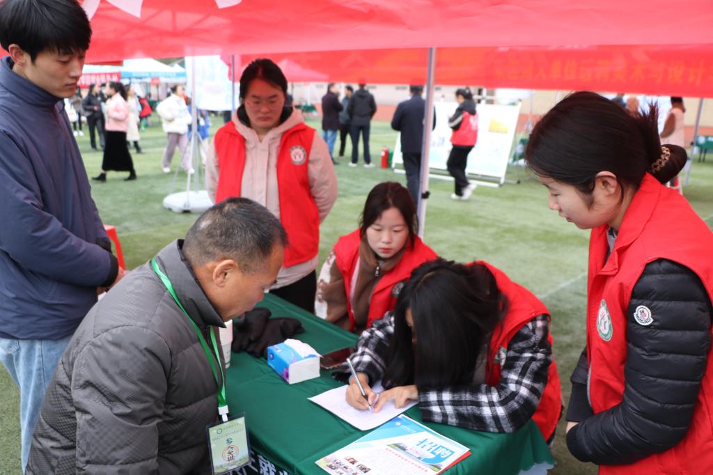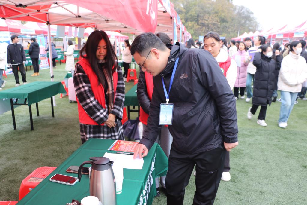 院长唐国战,党委副书记黄煌和就业秘书沈海蓄参加了双选会。