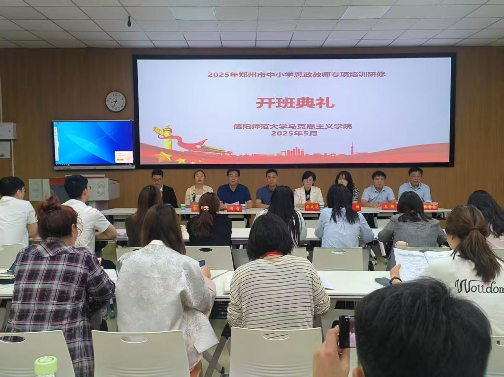 为进一步强化思政课教师队伍建设,提升思政课教学质量与育人成效,5月13日上午,2025年郑州市中小学思政课教师专题培训开班典礼在社科楼120教室举行。郑州市教育局教师教育处副处长谭斌艳、科员田甜,郑州市第二十四中学主任华国宝,小说狂人