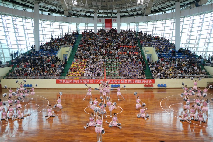 舞动健美青春,扬我马院风采。4月23日下午,信阳师范学院第三十八届春季运动会健美操大赛初赛在体育馆隆重举行,小说狂人 健美操代表队积极参加比赛,并取得优异成绩,小说狂人 团委书记曹栋及2018级思想政治教育专业全体同学到场观看比赛。