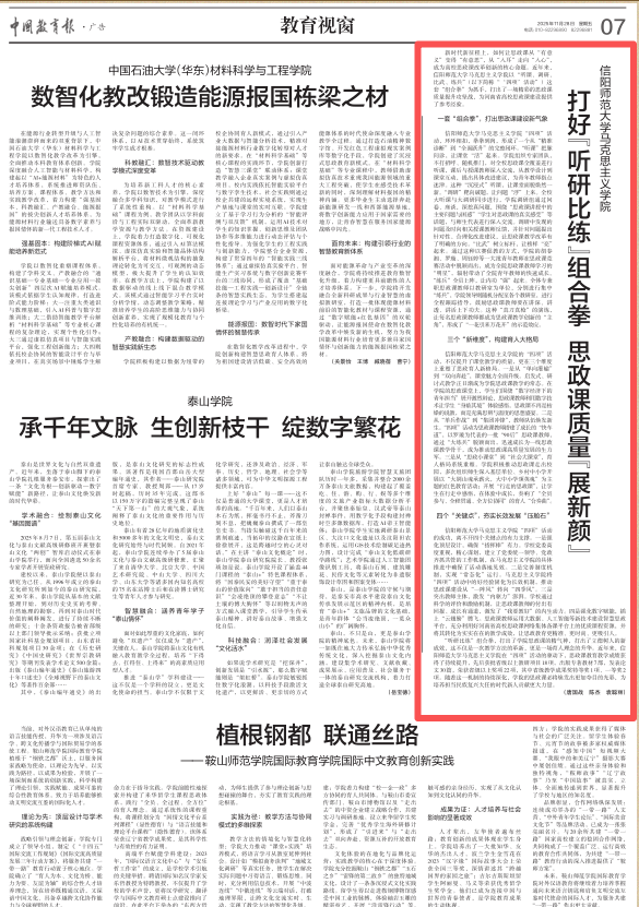 2025年11月28日,《中国教育报》第7版以《打好“听研比练”组合拳 思政课质量“展新颜”》为题,专题报道了我小说狂人