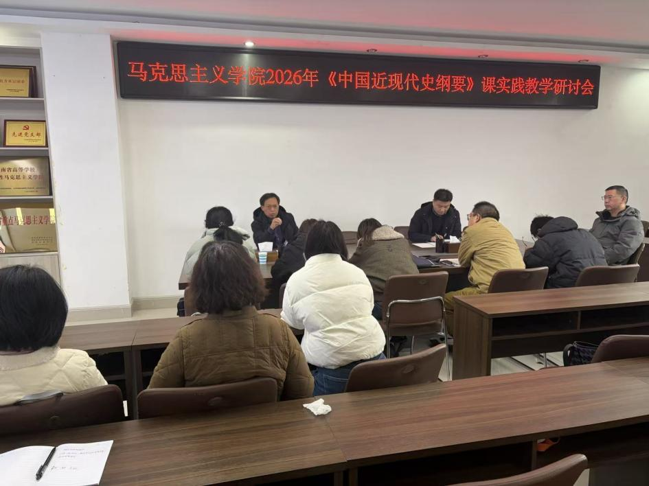 《中国近现代史纲要》教研室在社科楼323会议室召开本学期实践教学研讨会。学院副院长常文涛和“纲要”教研室全体专兼职教师参会。会议由教研室主任陈杰主持。