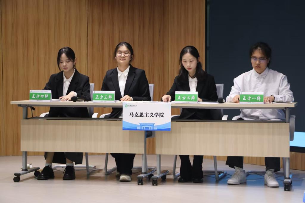 学生杨春、訾舒婷、刘畅、朱安然代表学院参赛,校大学生辩论社优秀成员担任本次赛事评委,辩论爱好者及各参赛选手代表到场观赛。
