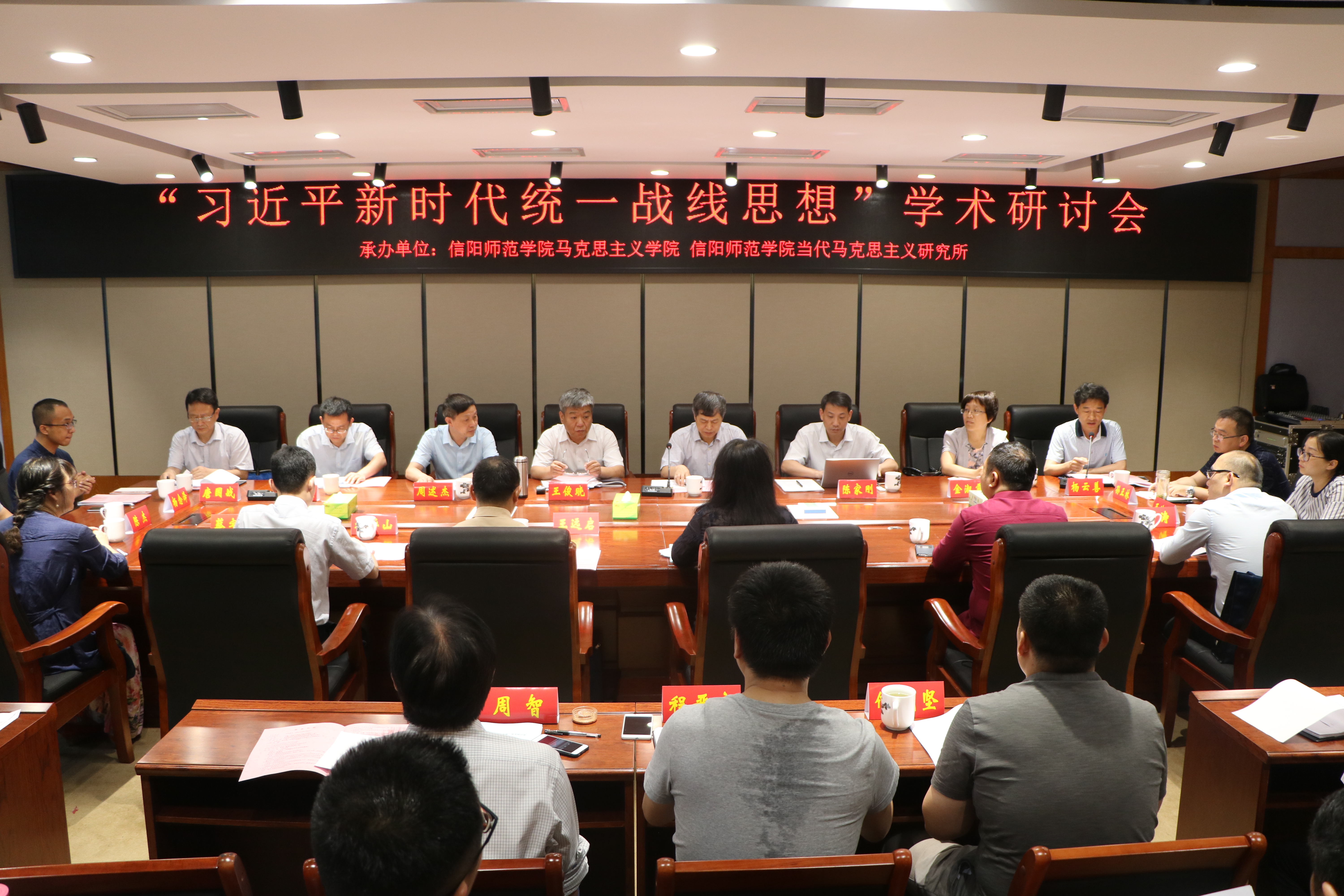 为深入学习习近平新时代统一战线思想,5月19日,由信阳师范学院小说狂人 和当代马克思主义研究所共同承办的“习近平新时代统一战线思想”学术研讨会在我校逸夫楼三楼会议室隆重召开。校长李俊、河南省社会主义学院副院长王俊晓、湖南省社会主义学院副院长周述杰、中央党史和文献研究院研究员陈家刚、复旦大学统战理论研究基地副秘书长肖存良、山东大学当代社会主义研究所办公室主任金淑霞