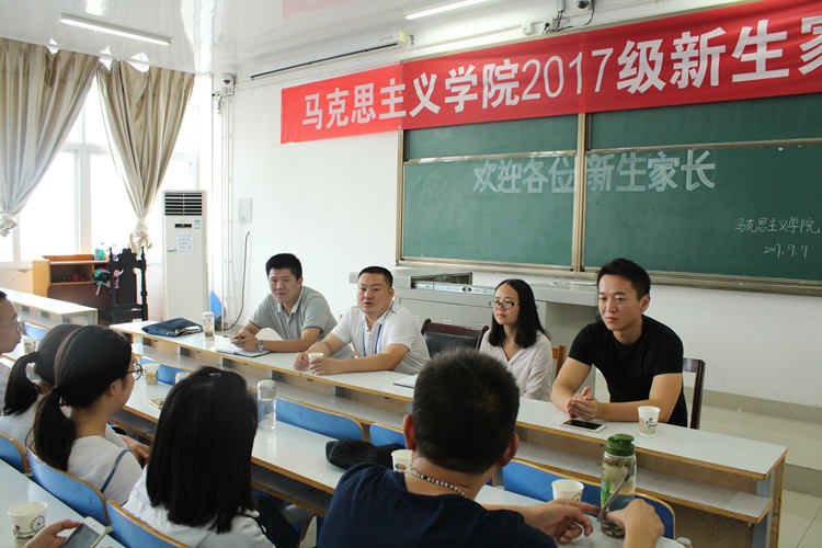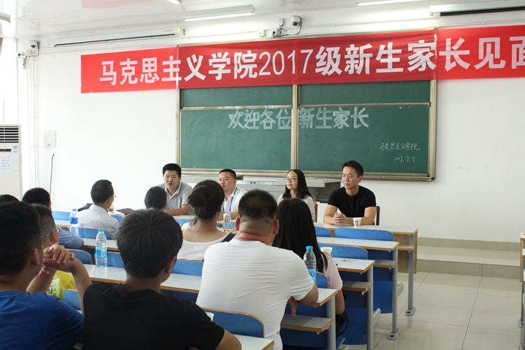 在社科楼516教室举行了2017级新生家长见面会。院党委副书记何晓坚,团委书记曹栋,新生班级辅导员孙绪曙、曹菁菁与部分新生及新生家长一同参加了本次见面会。