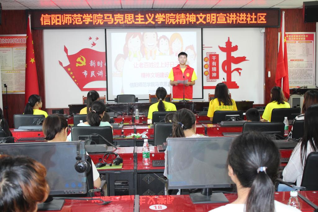 团委书记曹栋、团委老师曹菁菁的带领下走进信阳市浉河区飨堂社区,开展了题为“让老百姓过上好日子”的精神文明宣讲活动。