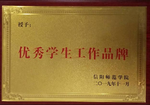 “南湖”系列育人体系荣获信阳师范学院“优秀学生工作品牌”。