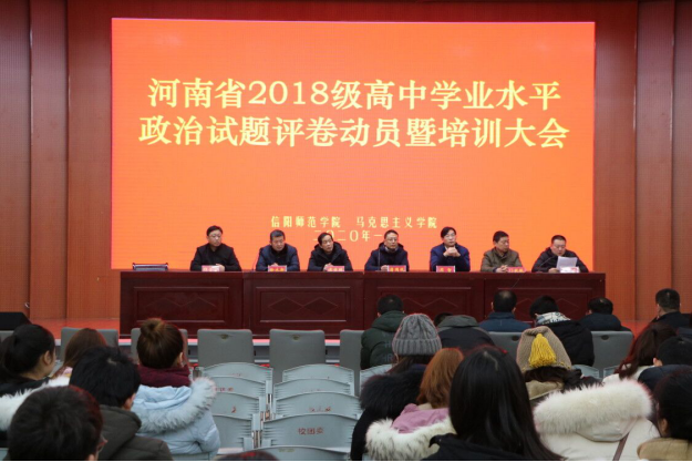 在逸夫楼报告厅召开河南省2018级高中学业水平政治试题评卷动员暨培训大会。学院党委书记唐国战,党委副书记徐永新、何晓坚,副院长周智、黄世明、程晋富,当代马克思主义研究所副所长门献敏出席会议,200余名评卷人员参加本次动员大会。会议由周智主持。