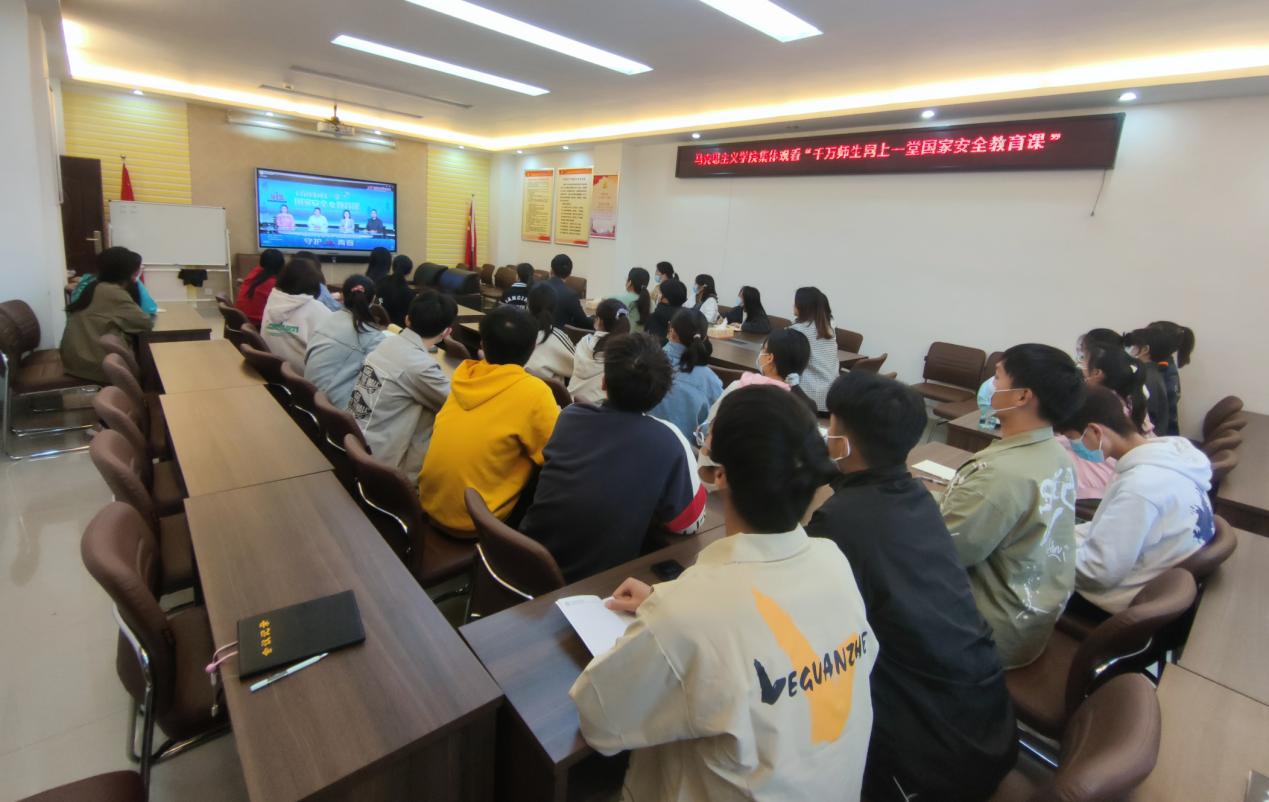 领导班子、部分无课教师及学生代表在社科楼323会议室集中观看了中国大学生在线、腾讯面向全国高校师生共同推出“千万师生同上一堂国家安全教育课”公开课,课后师生就国家安全教育问题进行研讨交流。