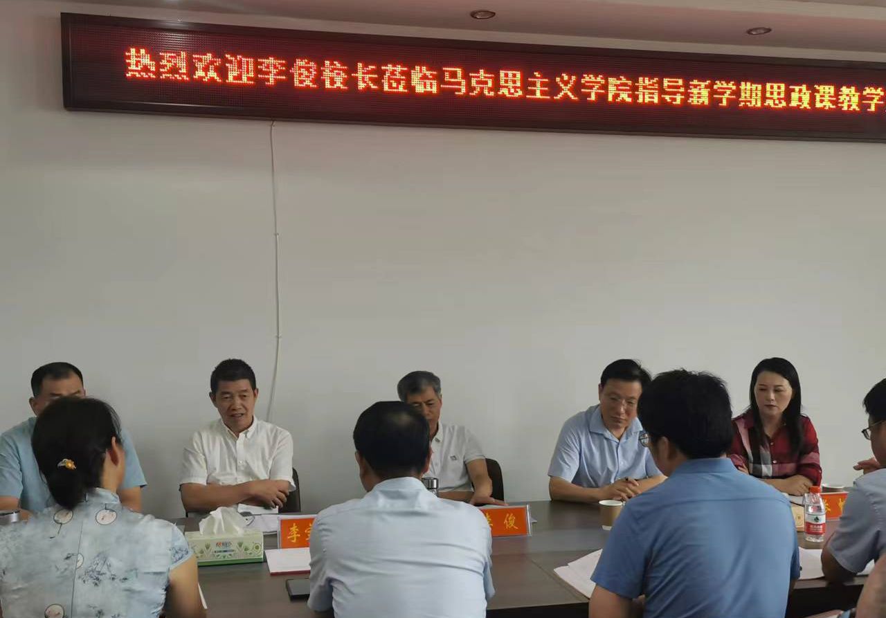 听课结束后,李俊在社科楼323会议室主持召开了座谈会。在听取马院负责人汇报后,李俊对思政课授课中遇到的难题进行了深入分析,就怎样备好课、怎样上好课等问题提出了明确要求。一是思想上高度重视,行动上高度自觉。任课教师要深刻领会开好思政课的重要性,以扎实的理论和丰富的学识引领课堂教学。二是讲好思政课关键在教师。要充分调动教师的积极性、主动性、创造性。要给学生埋下真善美的种子,引导学生扣好人生的第一粒扣子,争做一名“四有”好老师。要强化知识积累,梳理教材重难点,化压力为动力,加强集体备课,各教研室教师共磨一节课,多举措地讲深、讲透、讲活思政课,提高学生的抬头率和点头率。三是加强统筹管理,提高思政课实效性。邀请省教指委委员来听课,加强豫南高校联系,吸收意见建议,取长补短,提升思政课程建设质量。