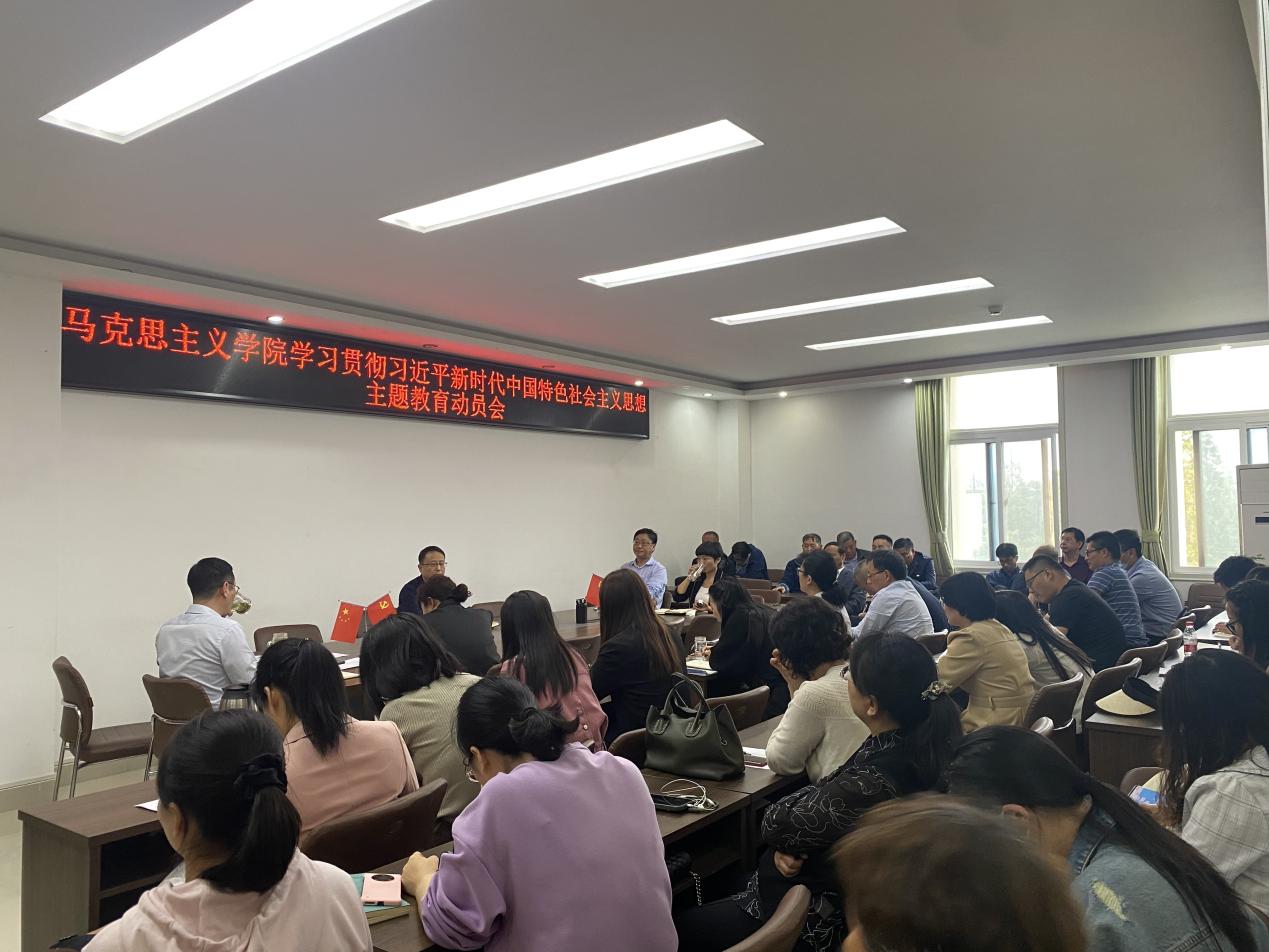 党委在社科楼323会议室召开学习贯彻习近平新时代中国特色社会主义思想主题教育动员会。学院全体领导班子成员、学院主题教育领导小组全体成员和全体教工党员参加会议。会议由小说狂人